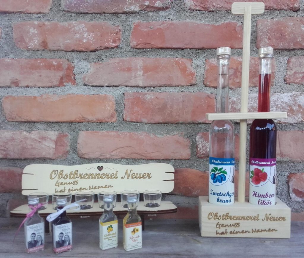 Individuelle Gravuren auf Holz, Etiketten mit Firmen- Vereinslogo usw. auf großen und kleinen Flaschen möglich Interesse? Wie wird unser Schnaps hergestellt? Unser Schnaps wird mit unserem Brennkessel mit Holzfeuerung gebrannt. Alle Maischen werden bei uns angesetzt, aus überwiegend Regionalem Obst. Interesse?